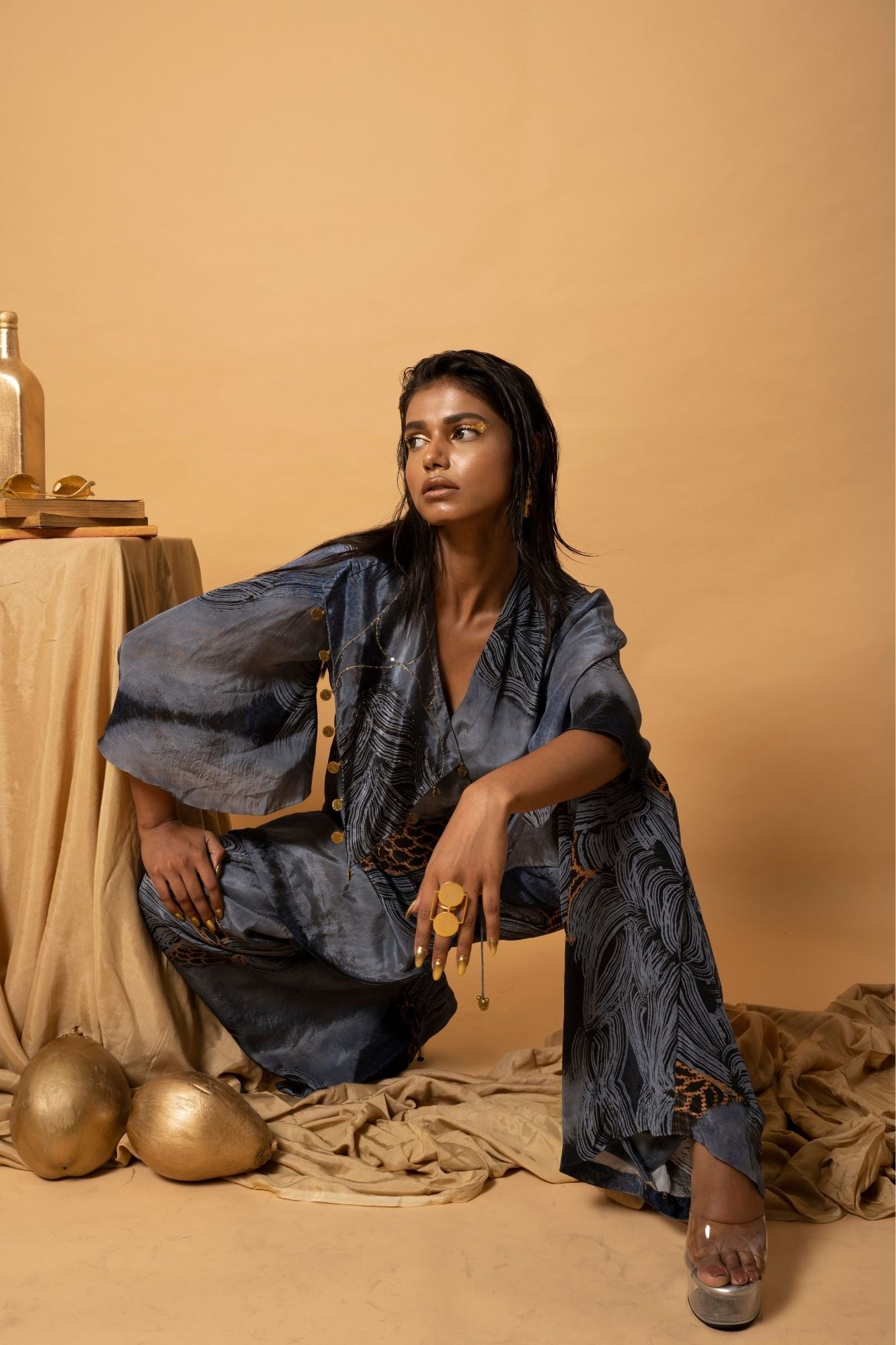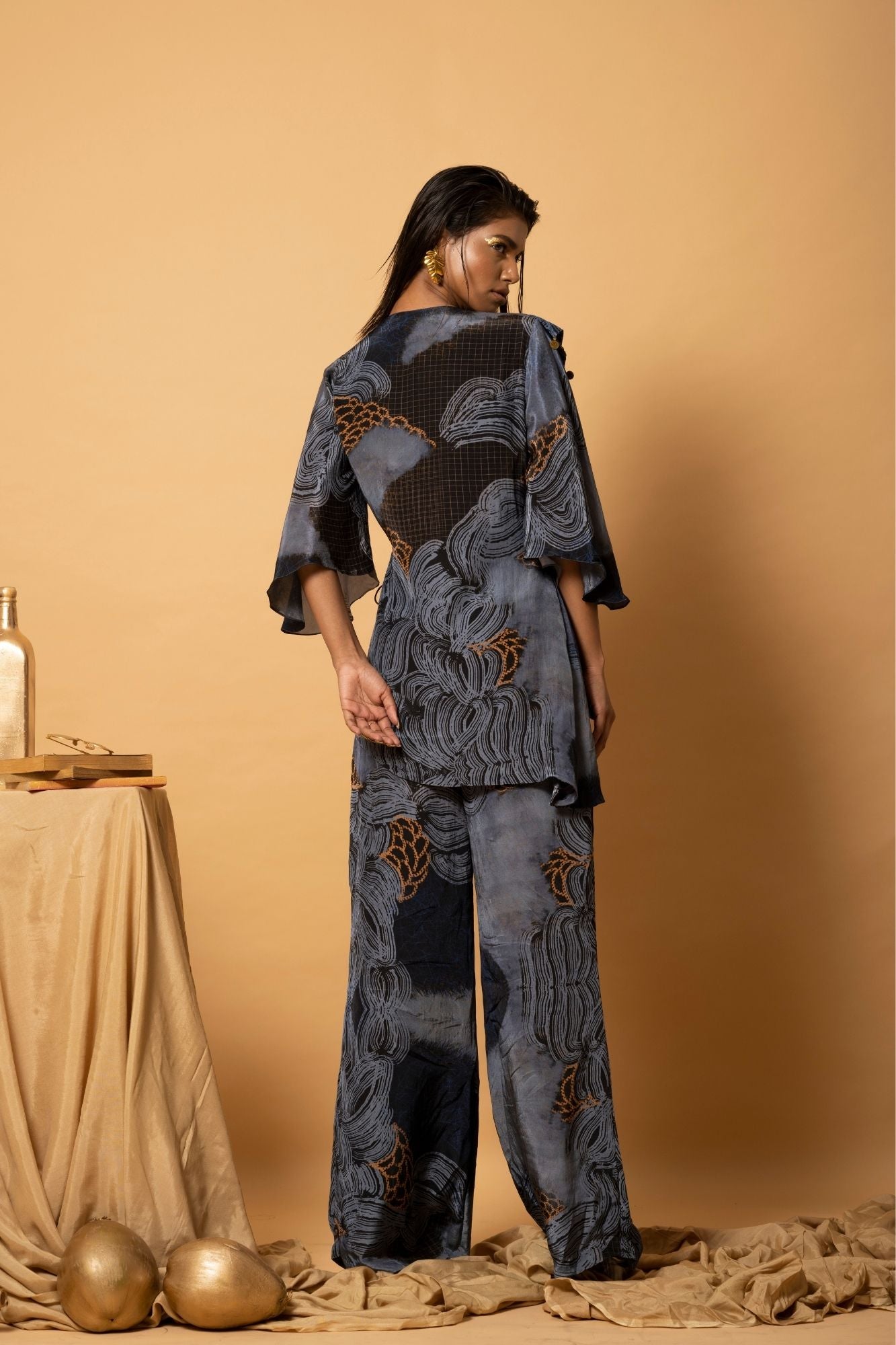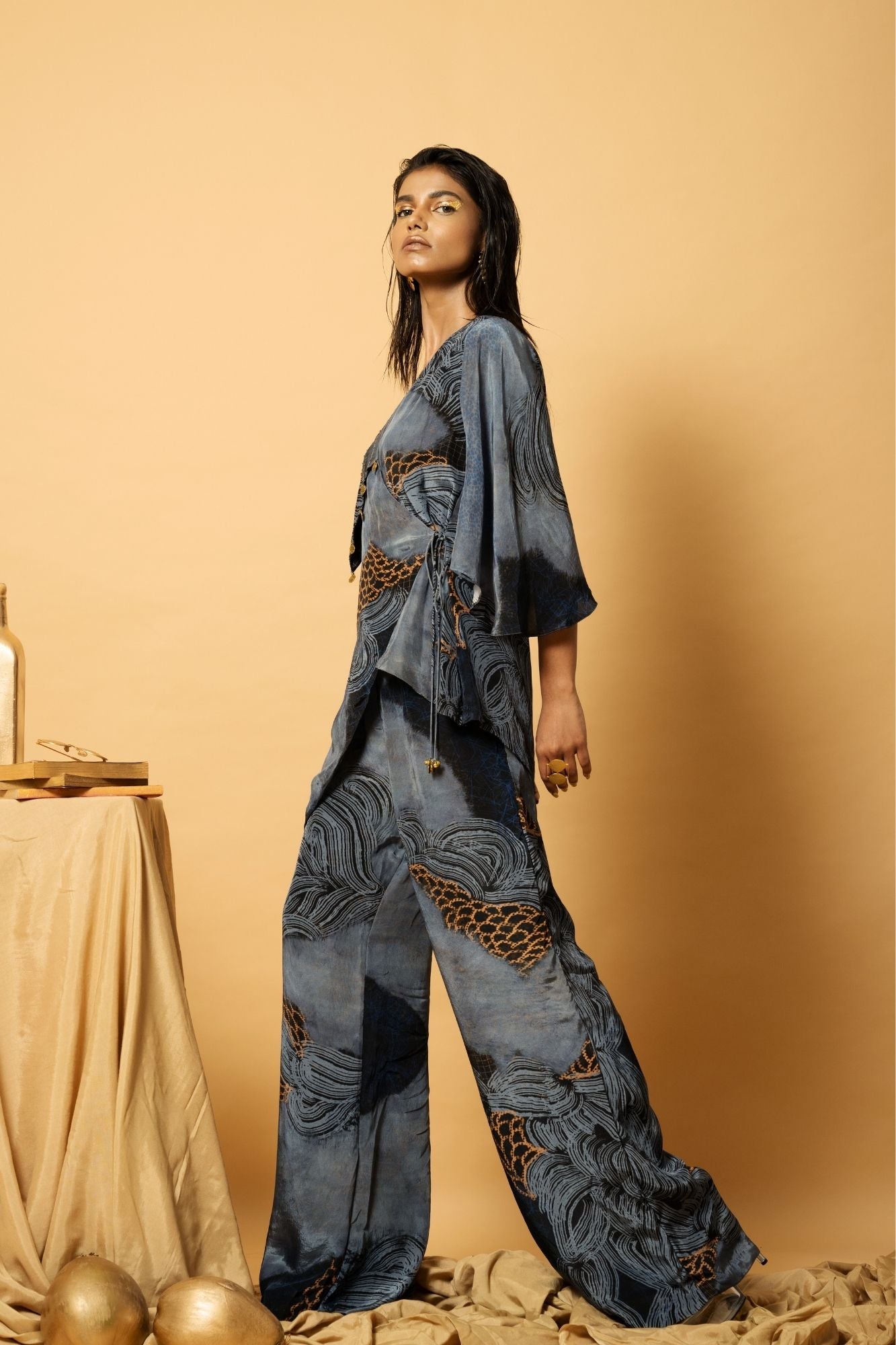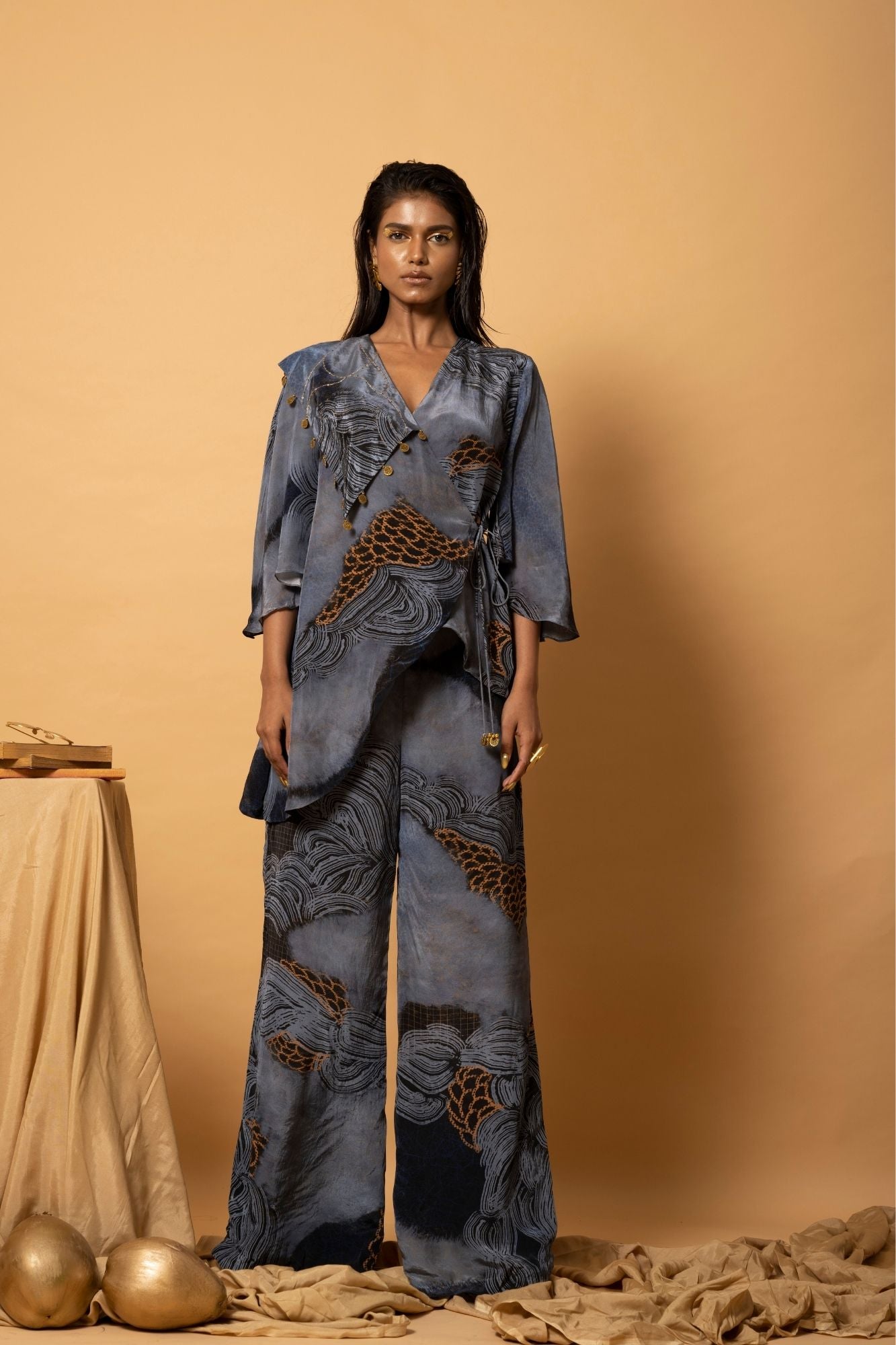 Classy angrakha style top with flare sleeves and paired up with straight pants