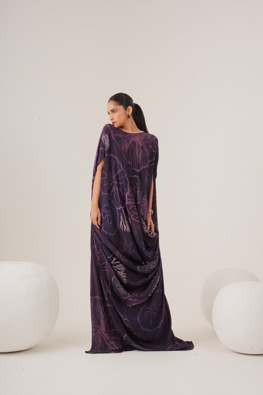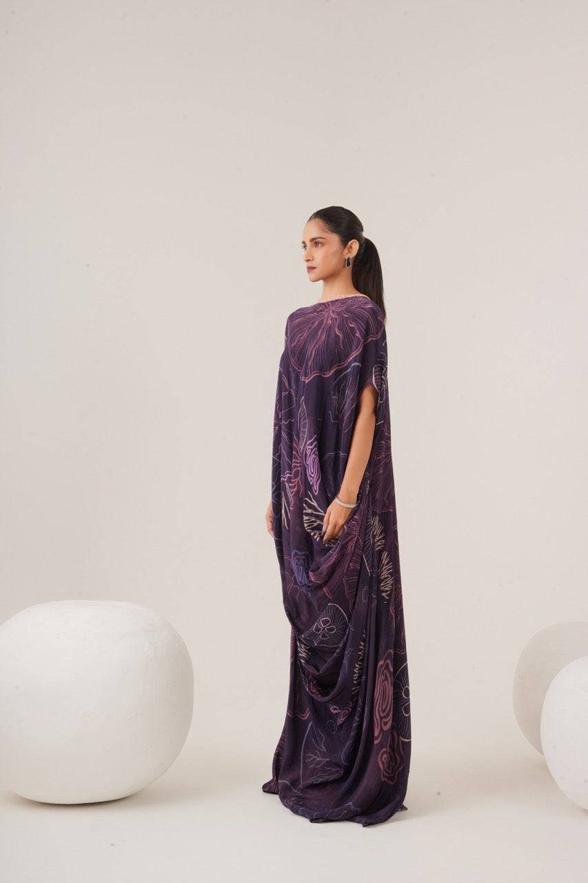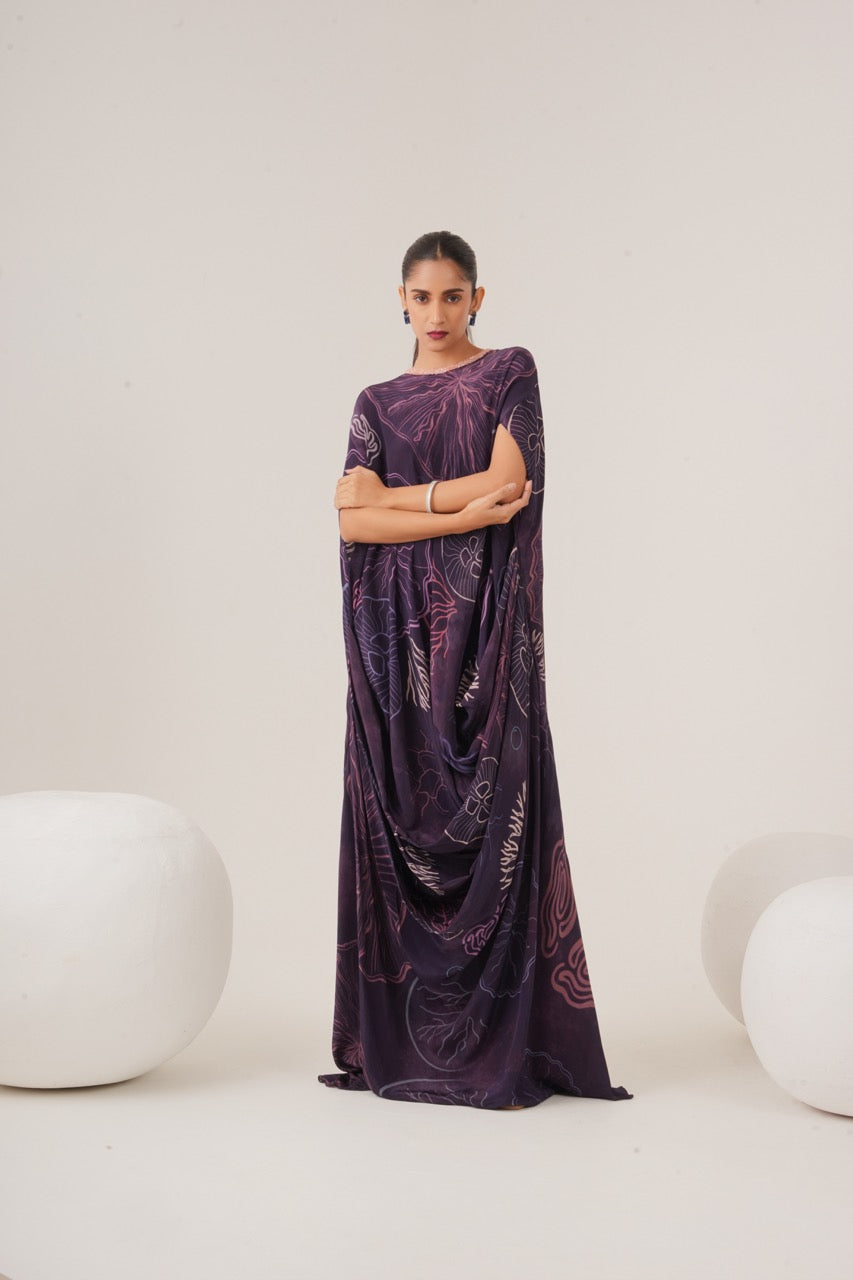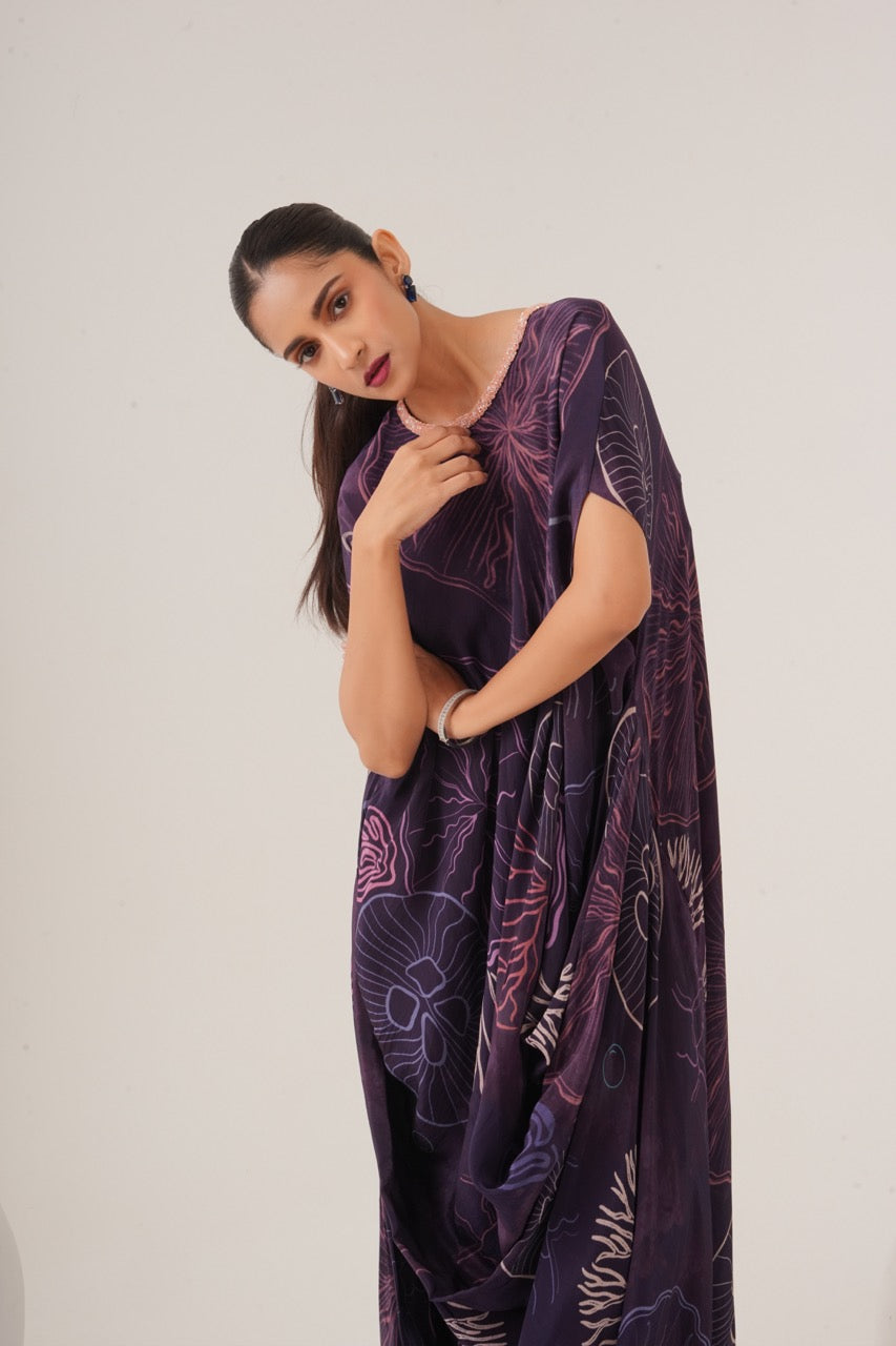Draped dress with neckline embellishment