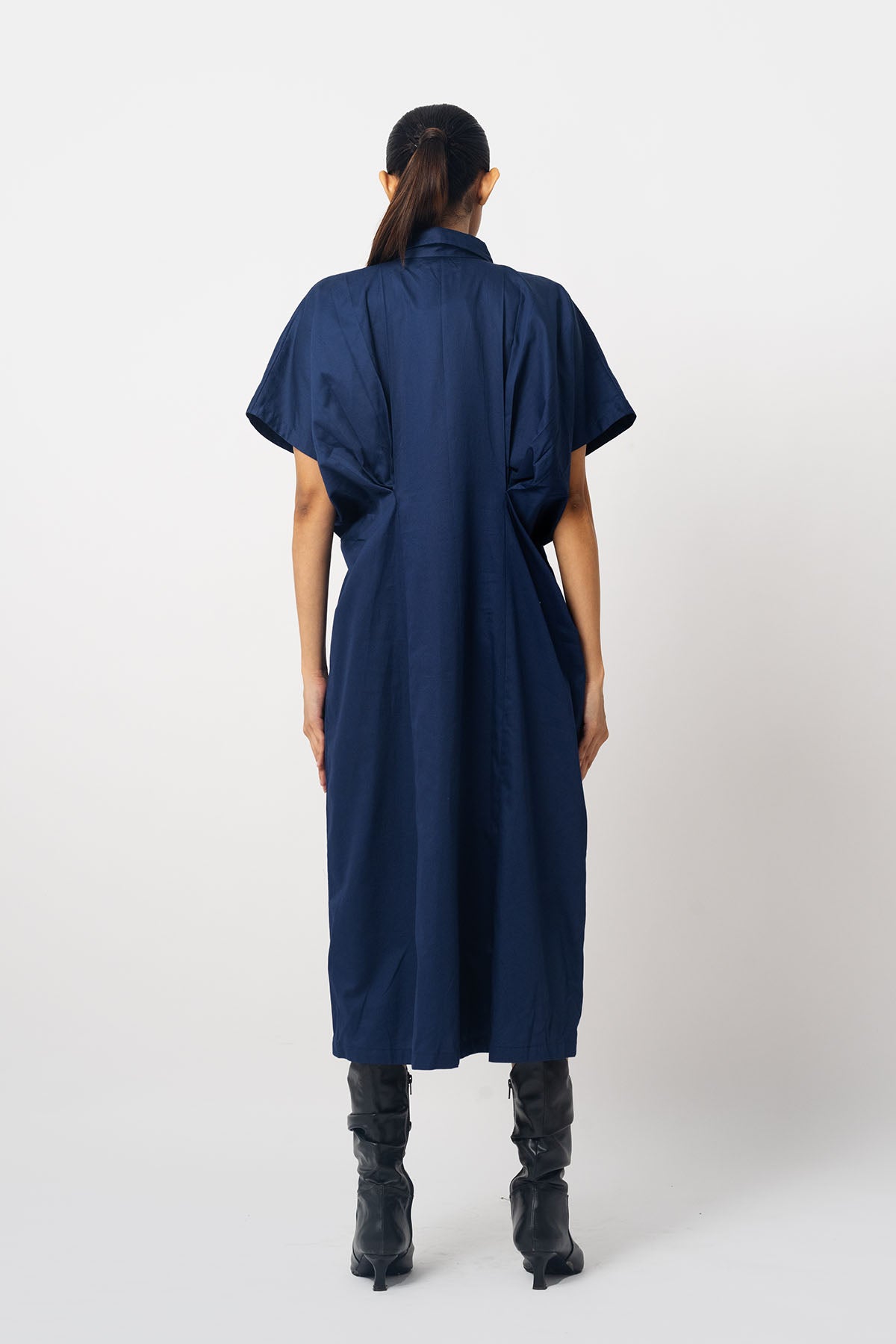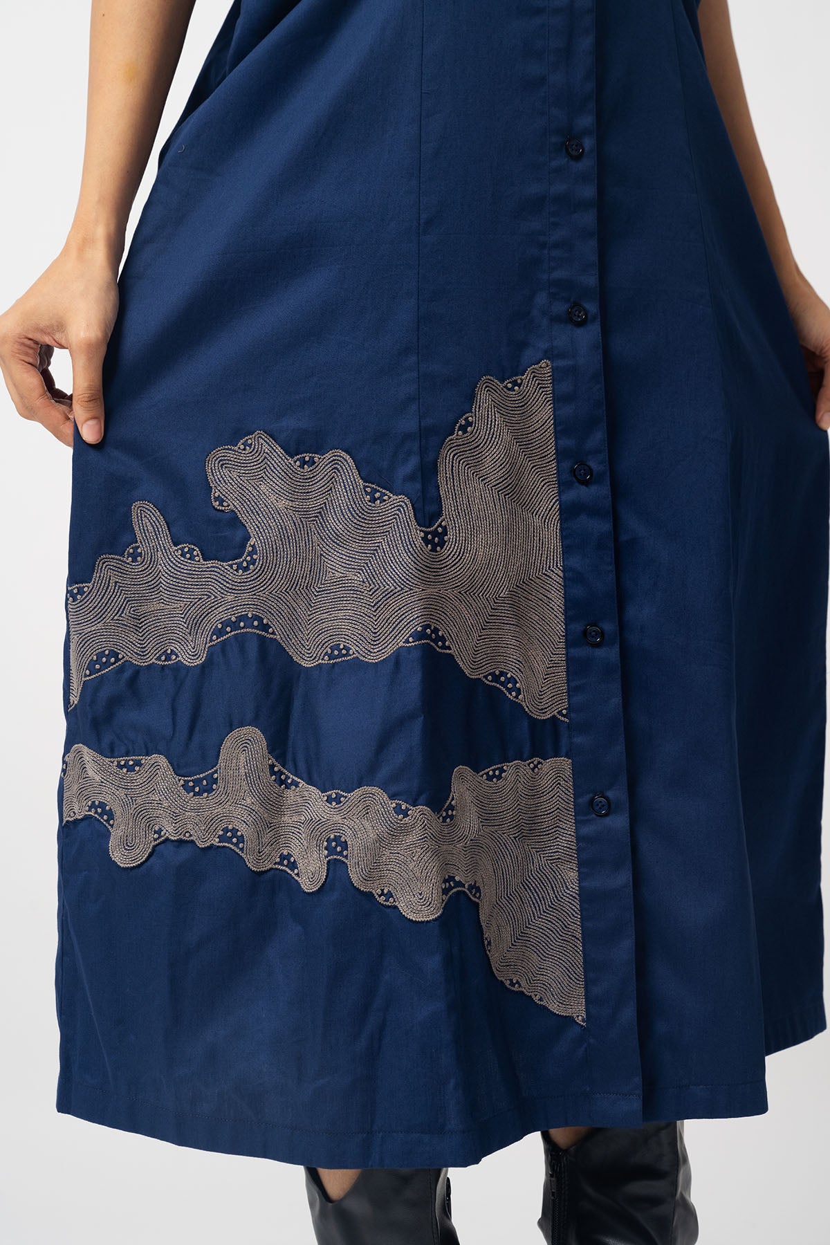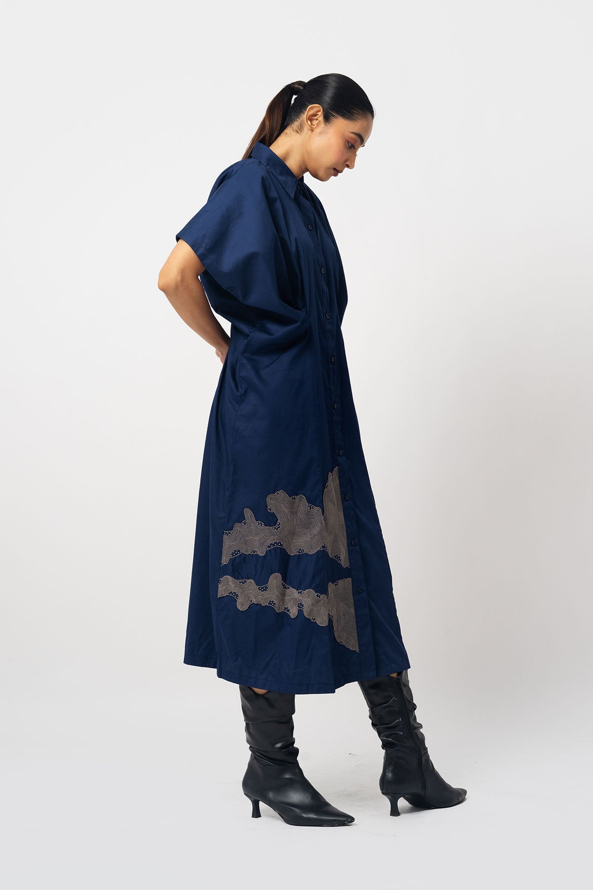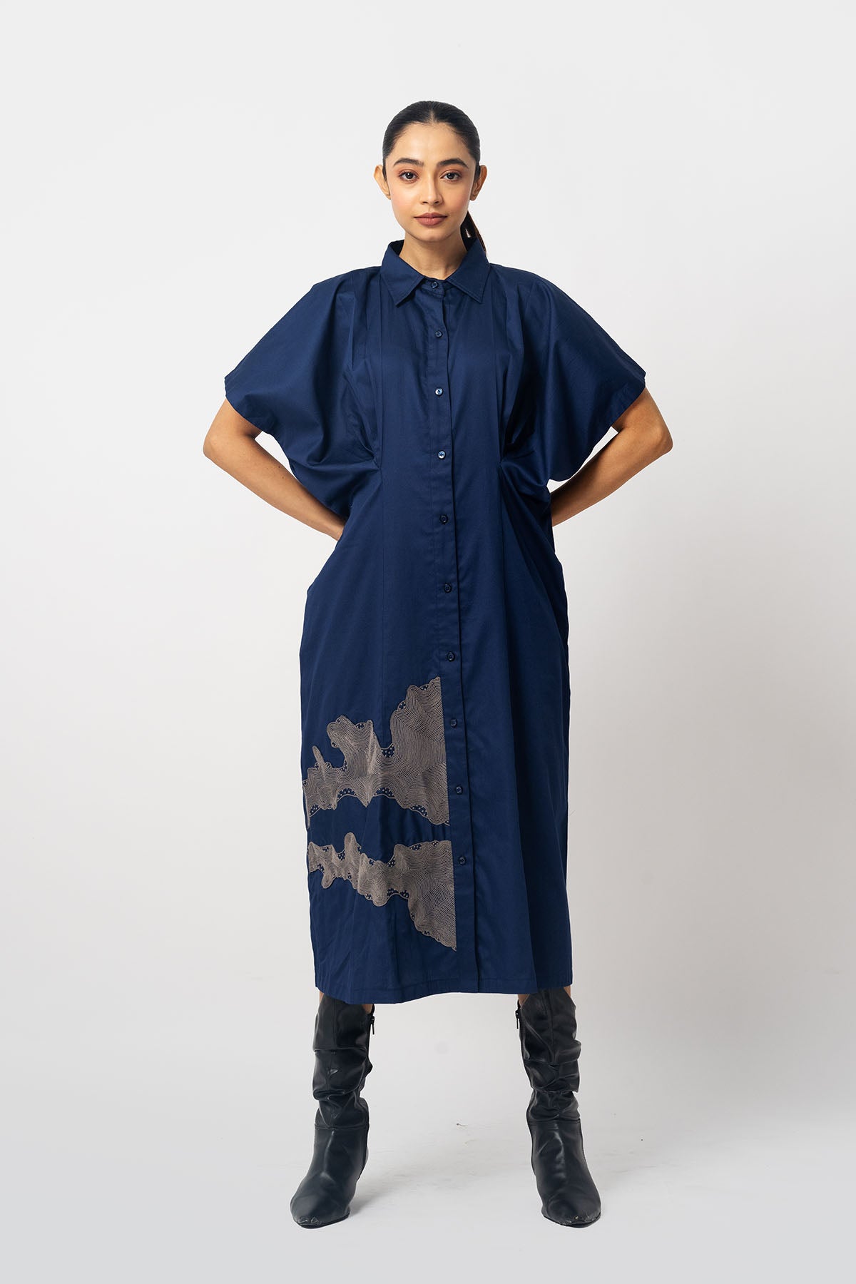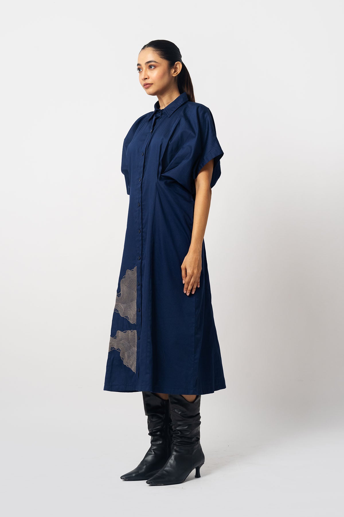 Embroidered shirt dress with open pleated sleeves