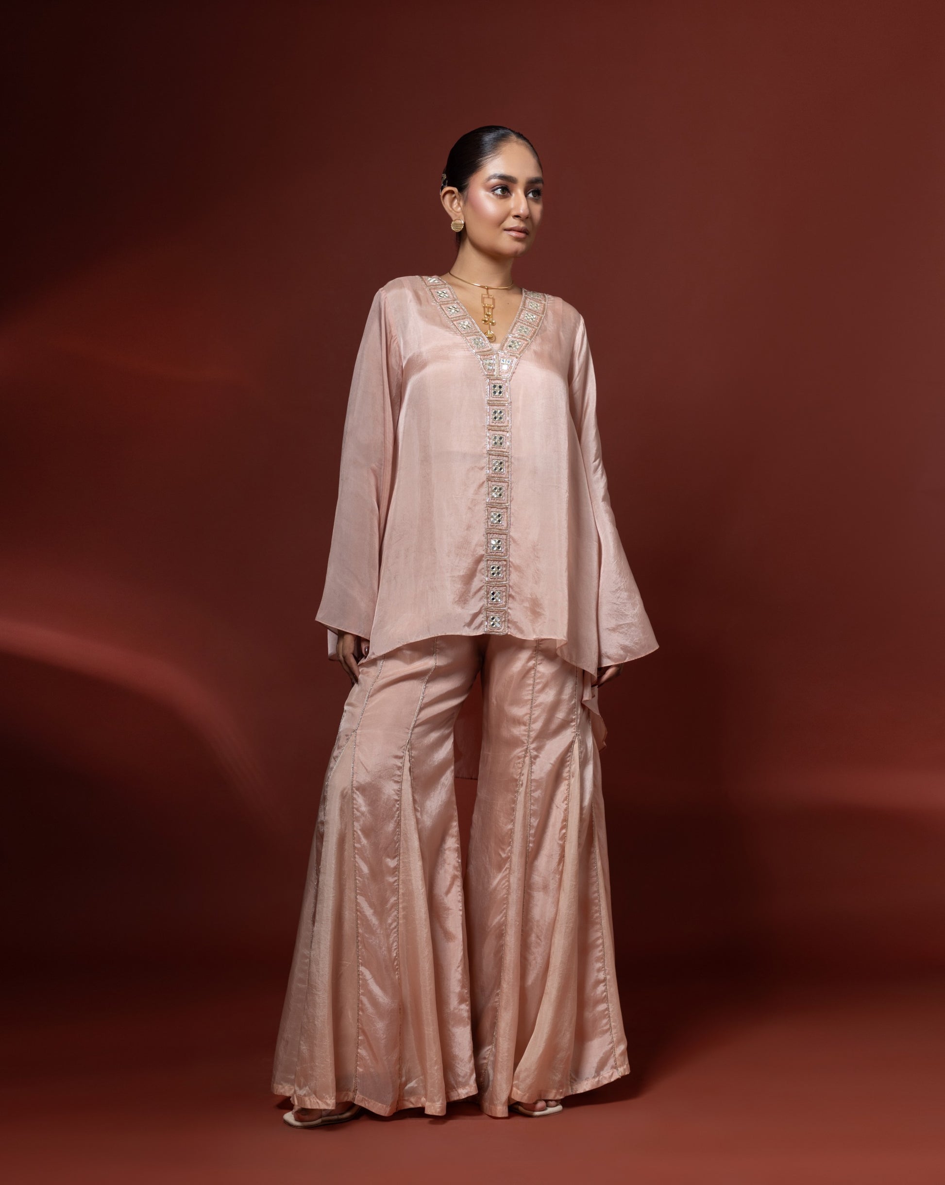 Top paired with flared pants