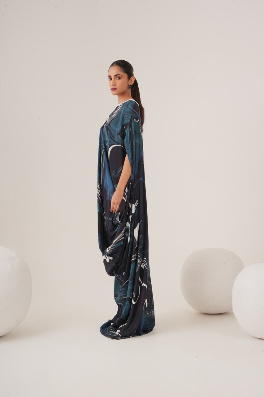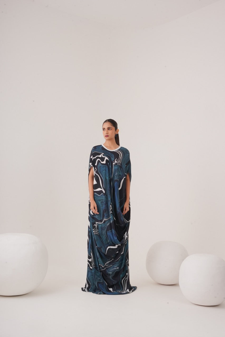Draped dress with neckline embellishment